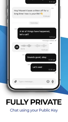 Uup App is based on asymmetric encryption of messages and secure channeling for communication. Application is based on the concept of public key and private key. Users can only be contacted if they share a public key and add contact. Private key is generated based on the device and it doesn't need any email, mobile number or anything else to work. It just needs an internet connection and mobile device. Public key can be shared with the QR code or simply scan the code.